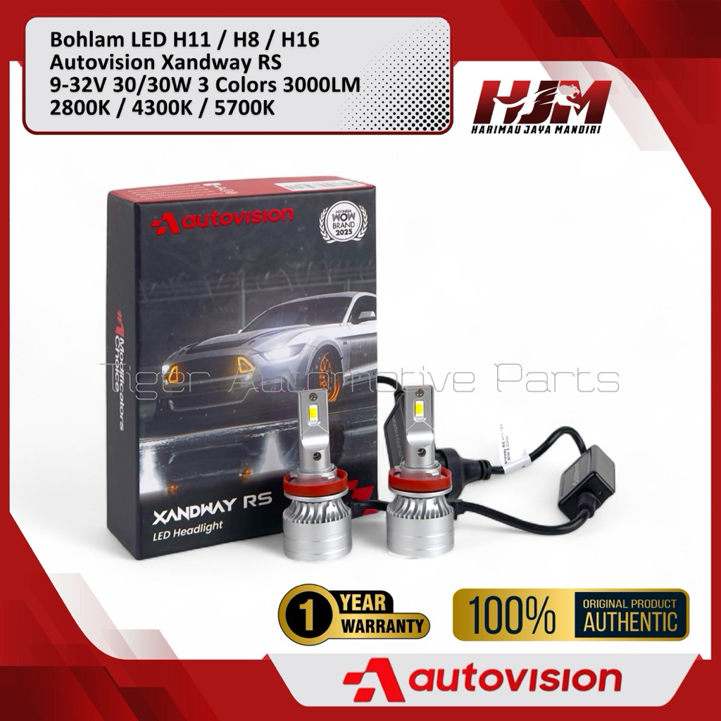 Bohlam Lampu LED Autovision Xandway RS 3 Color Warna H4 H11 HB4 9-32V 30/30W 2800K 4300K 5700K Original