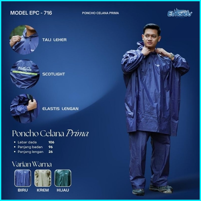 Jas Hujan Elmondo Bahan Pvc Setelan Ponco Maksimal Bb 95kg Siap Kirim