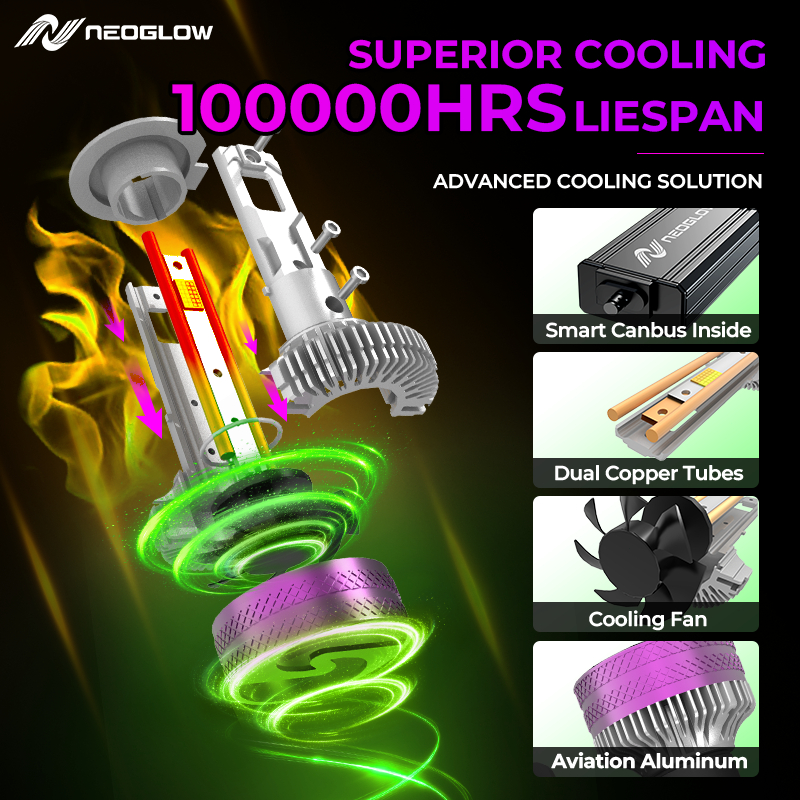 Neoglow LUNA Lampu LED Mobil 200W 40000LM Headlight H4/H11/9005 lampu mobil led depan Lampu tiga warna Super Terang