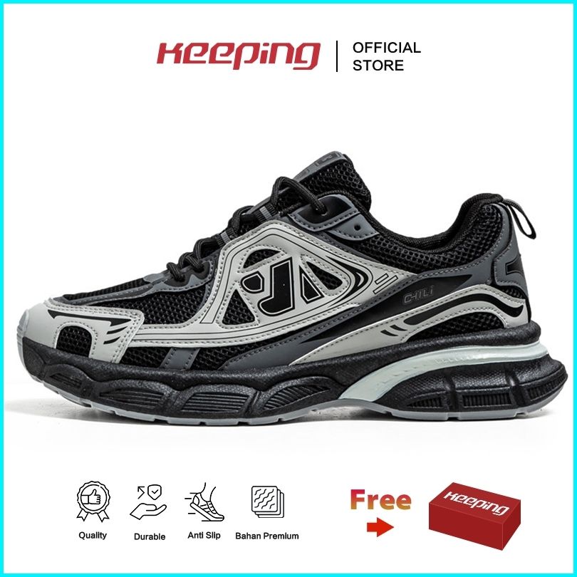Keeping Sepatu Sneakers Pria Outdoor Original Sepatu Cowok Jalan Hiking Hitam Kekinian Ksr729