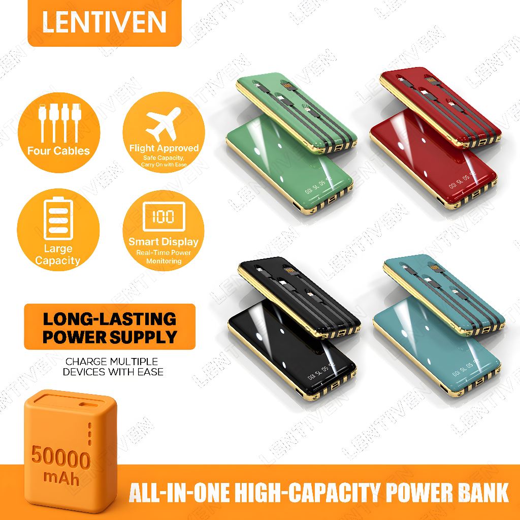 PUNING LENTIVEN wer 50000mAh Fast Charge 4 Kabel iPhone/Type C 1 Tahun 50000