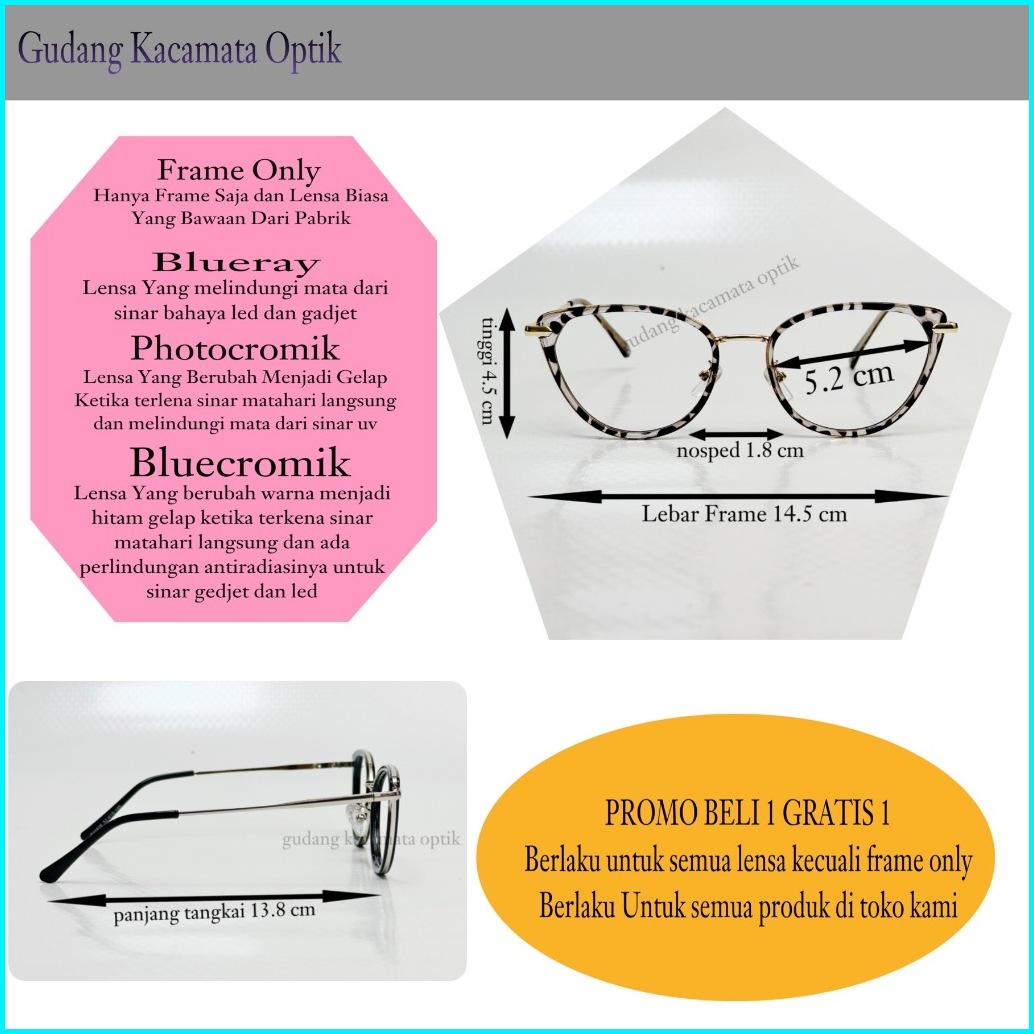 Fuhang Kacamata Wanita Mufada Terlaris Leopart Minus Optik Blucromik Cylinder Baca Cateye Glasses