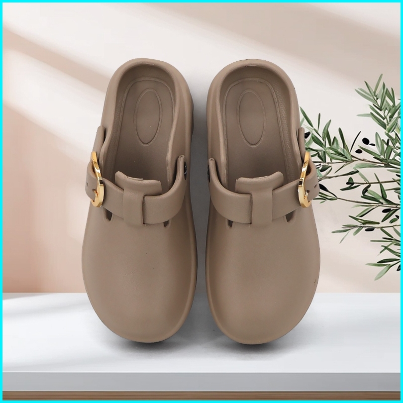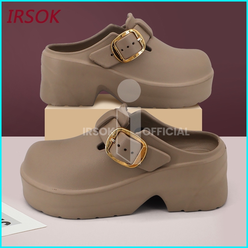 Irsok Sandal Wanita Kekinian Tinggi Sandal Fuji Wanita Wedges Korea Eva Tali Belakang Lace Up Tebal Sandal Wanita