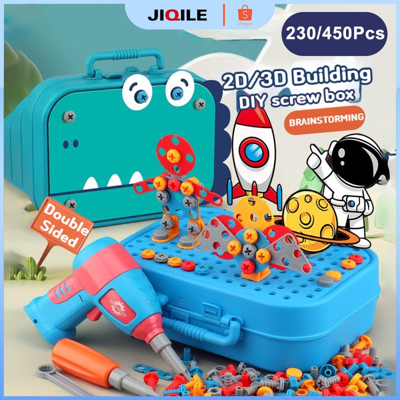 Jiqile Diy 3D Mainan Perkakas Anak 450Pcs Mainan Bor Listrik Mainan Alat Tukang Anak Edukasi
