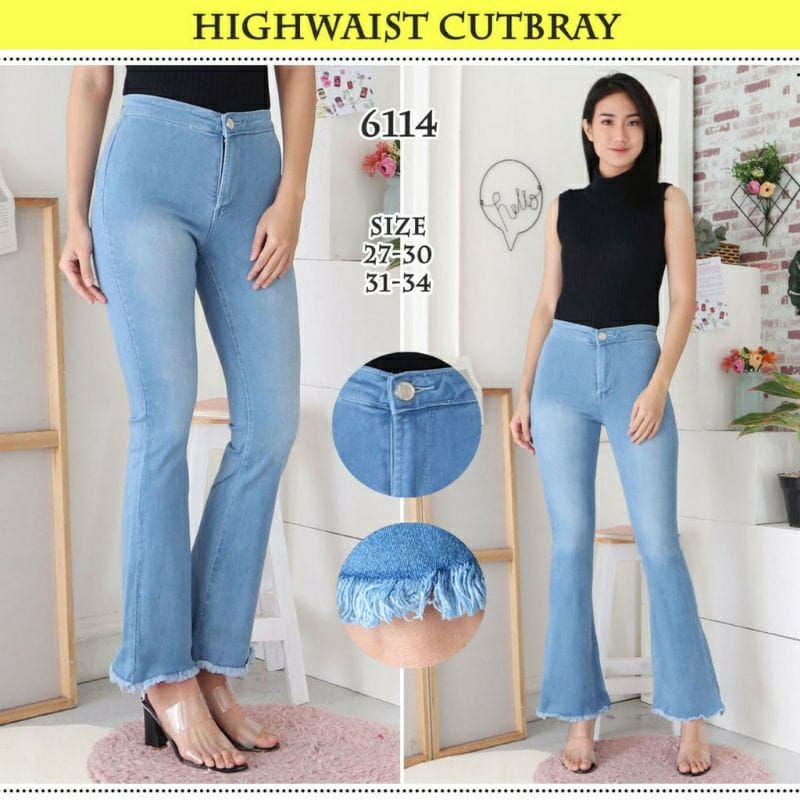 CELANA PANJANG JEANS WANITA HIGHWAIST CUTBRAY RUMBAI RAWISHEWES CUTBRAY RAWIS
