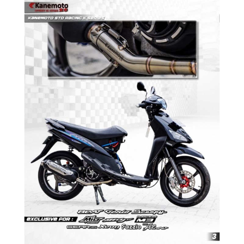 KNALPOT STANDAR RACING KANEMOTO BLACK BY SHIJIRO FOR MIO KARBU MIO SMILE MIO SPORTY BEAT SCOOPY GENIO MIO-J MIO-M3 VARIO