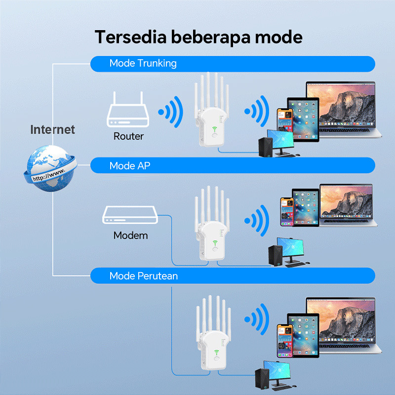 MISENI Repeater Wifi 1200Mbps Dual Band 2.4G+5G - 6 Antena Sinyal Kuat, Mode AP/Repeater/Wifi Extender Router, Penguat J