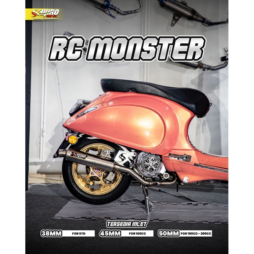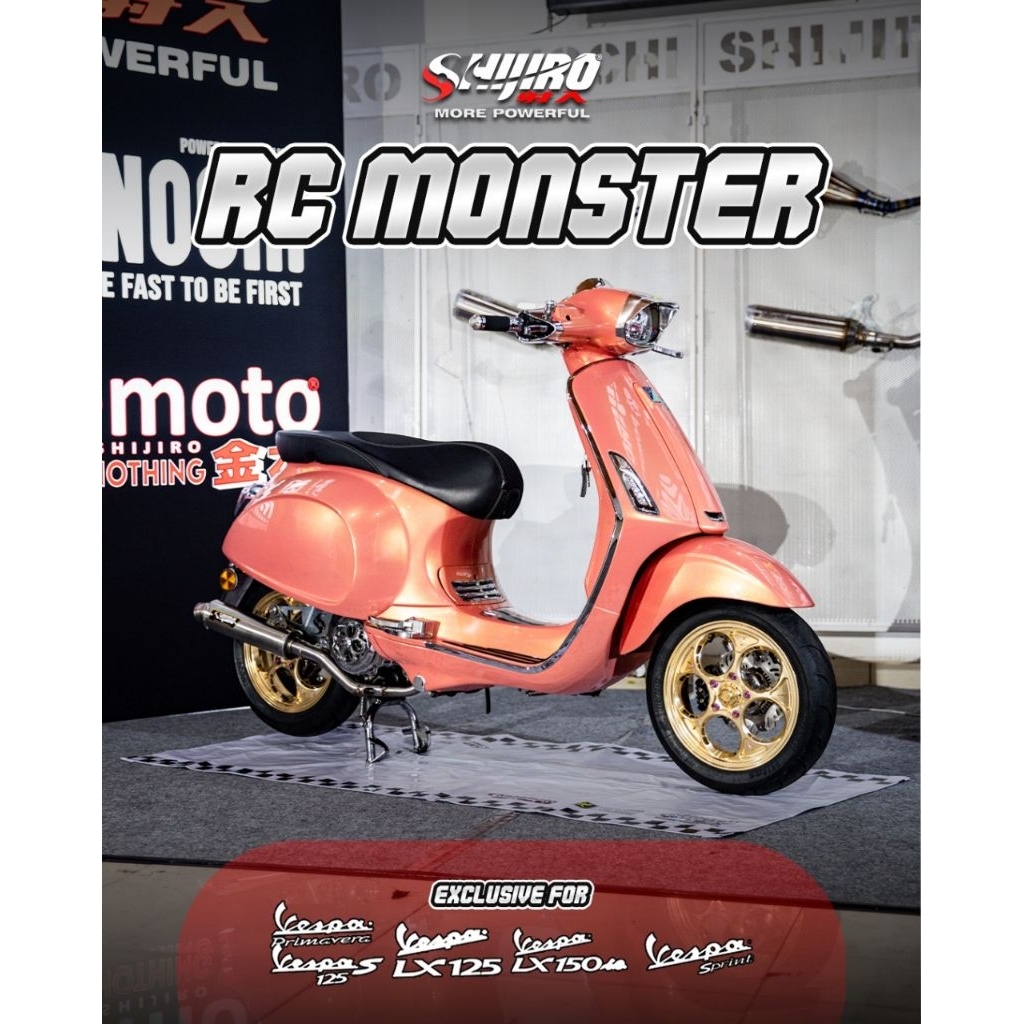 Knalpot Shijiro Racing type RC Monster Silencer Long Vespa S 125 150 2V, LX 125 150 2V, Sprint 125 150 3V, Primavera 3V,