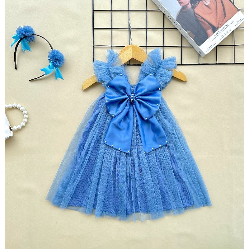 [READY STOCK] Dress pesta tutu tile anak dan bayi burgundy mutiara mewah bigbow pita satin besar pink denim blue jeans m