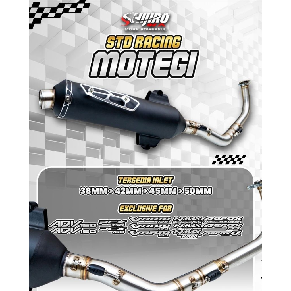 KNALPOT STANDAR RACING SHIJIRO TYPE MOTEGI BLACK + COVER CNC FOR AEROX N-MAX PCX VARIO ADV LEXY STYLO