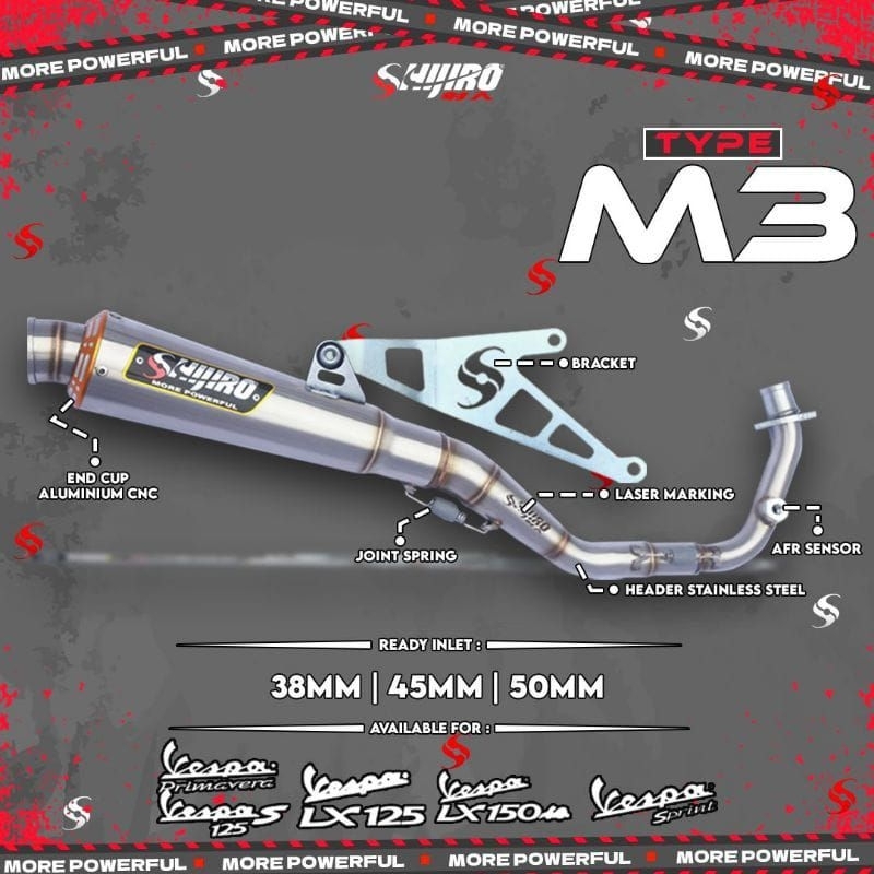 Knalpot Racing Shijiro type M3 for Vespa Matic 3v/2v sprin primavera LX S