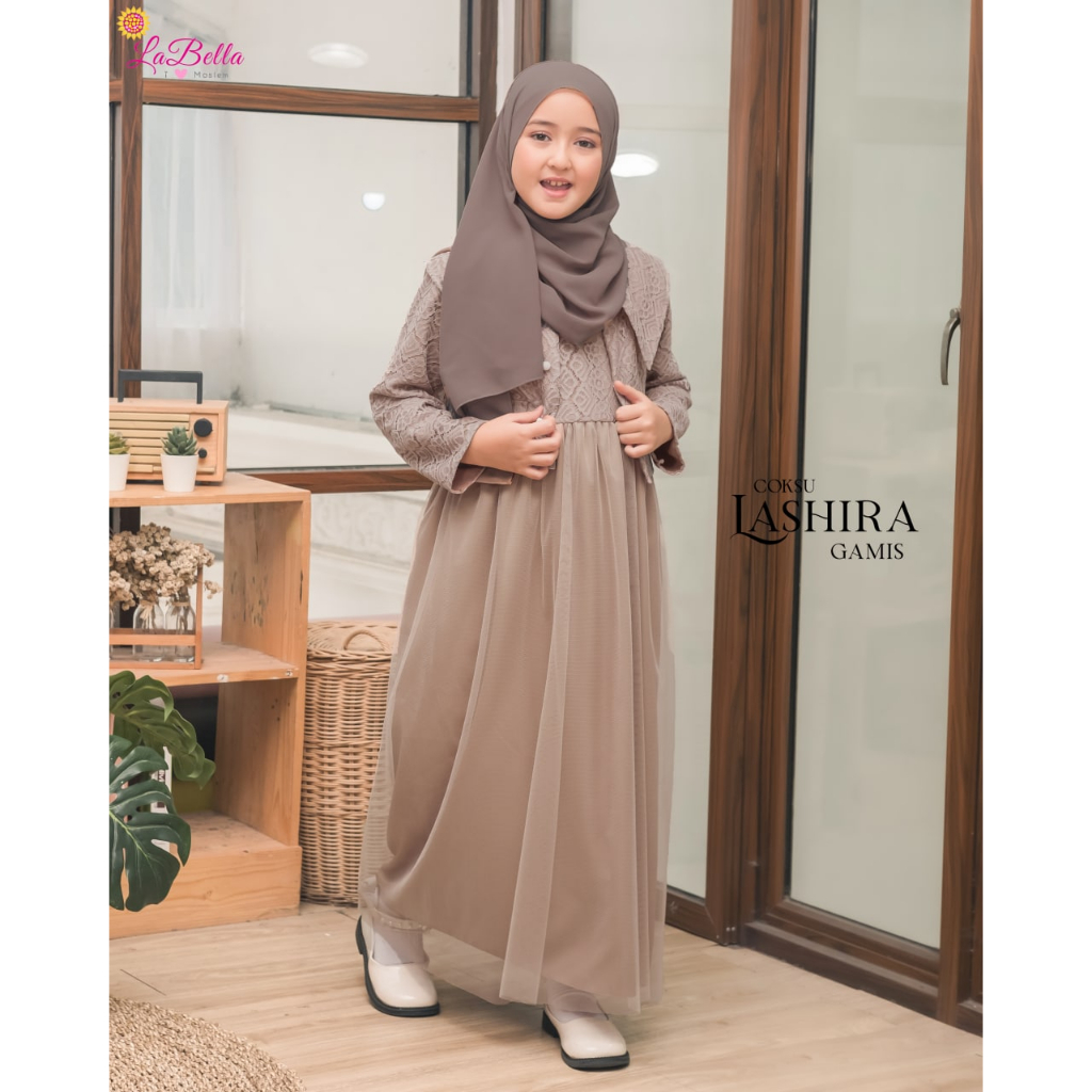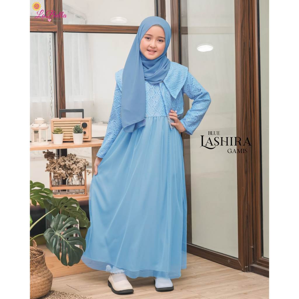 (5-12 tahun) LSR Baju Mu Setelan Gamis Lebaran Formal Pesta Anak LaBella Lashira Dress Biru Hijau Sage Coksu Black Pink