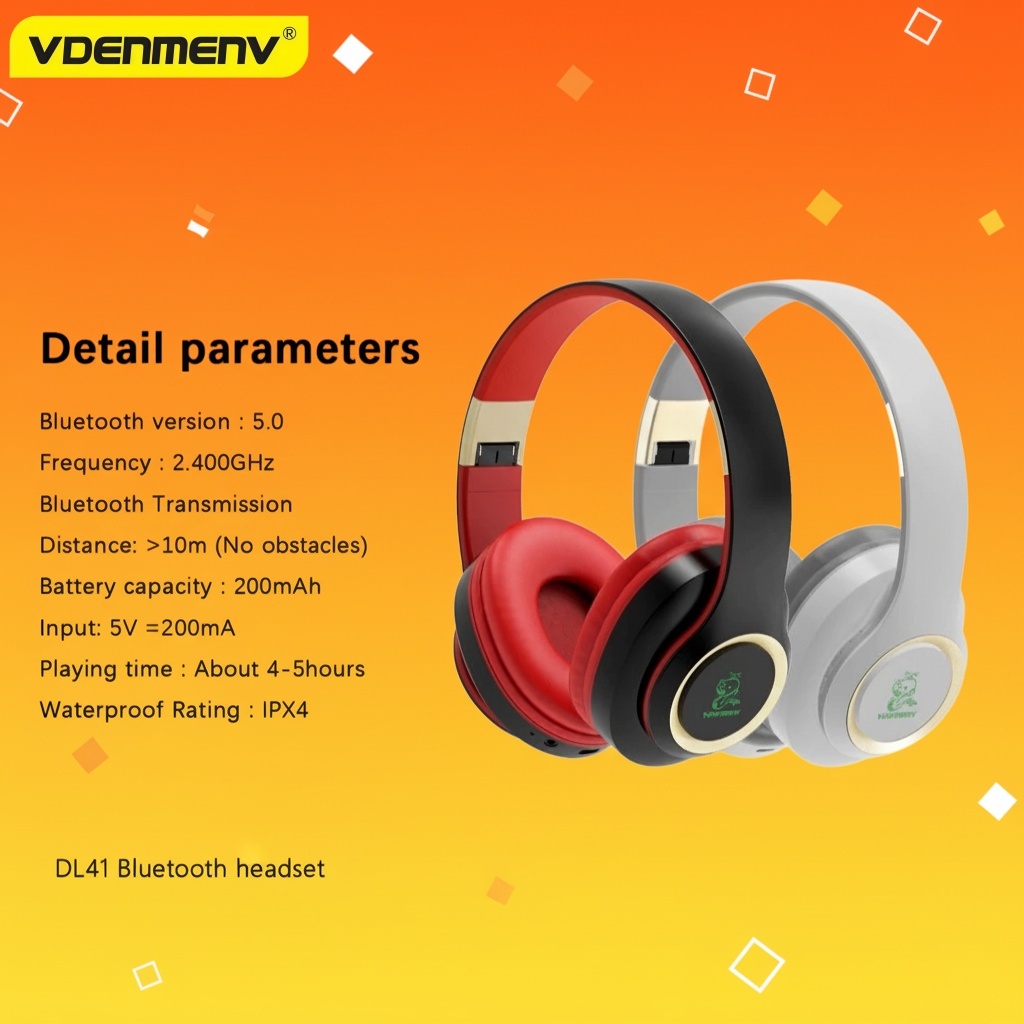 VDENMENV DL41 Headset Bluetooth 5.0 – Wireless Gaming Headphone untuk HP/Komputer