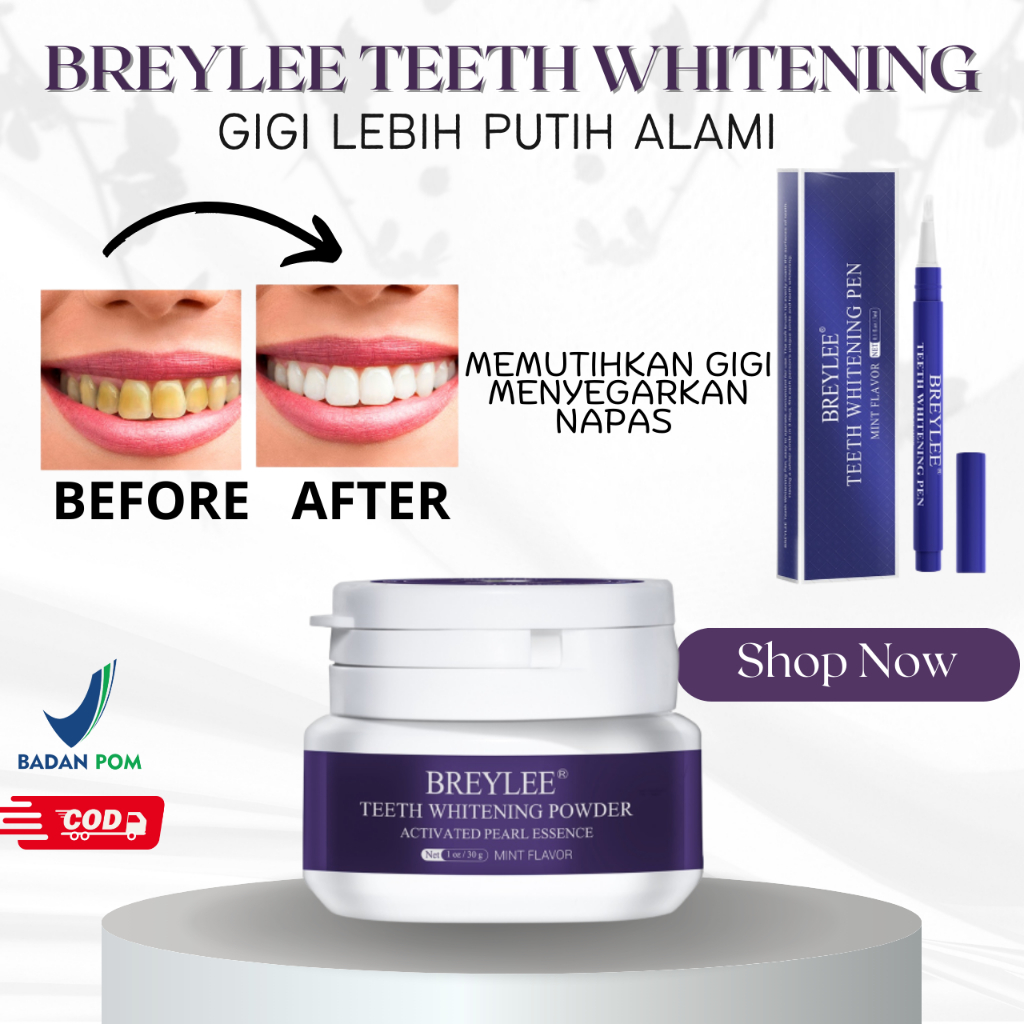 Breylee Teeth Whitening Powder & Pen - Pasta Pemutih Gigi Kuning Pembersih Karang Gigi
