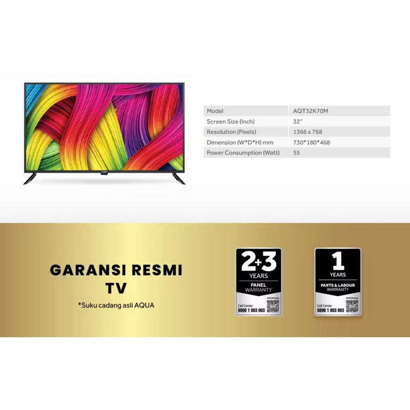 TV LED AQUA 32 INCH AQT32K70M 32K70M DIGITAL TV USB MOVIE HDMI BISA MIRACAST GARANSI RESMI
