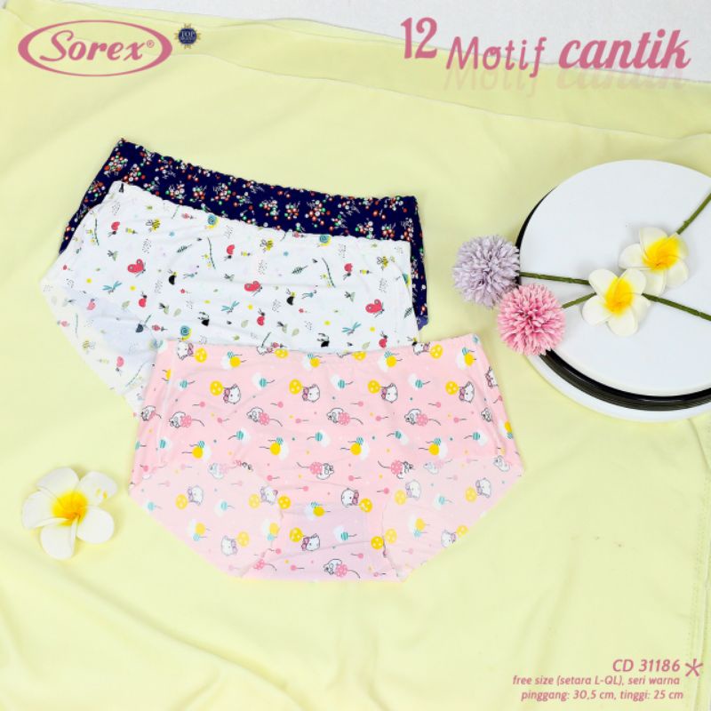 isi 6pcs SOREX CD FASHION WANITA SEAMLESS MOTIF CANTIK JOYFUL CD 31081- 31186 TANPA JAHITAN Anti Nyeplak