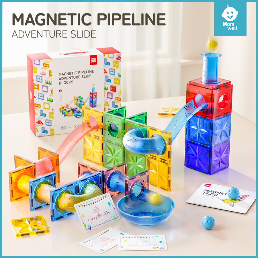 Momwell Mainan Magnetic 4D Tiles Building Blocks Mainan 63Pcs Marble Run Race Mainan Edukasi