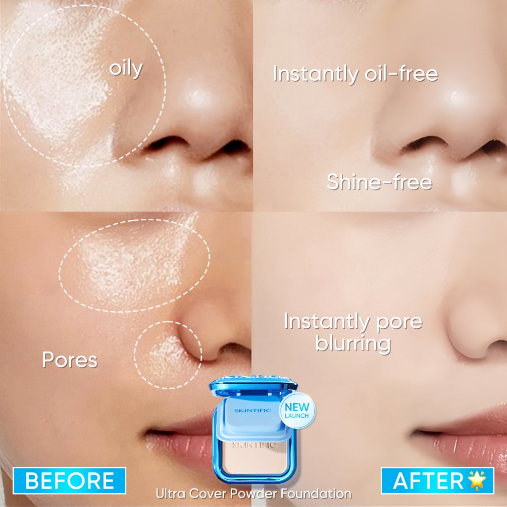 Original SKINTIFIC - 16 Jam Ultra Cover Powder Foundation 9g | Full Coverage Powder Matte Bedak Flawless Long-lasting Ma