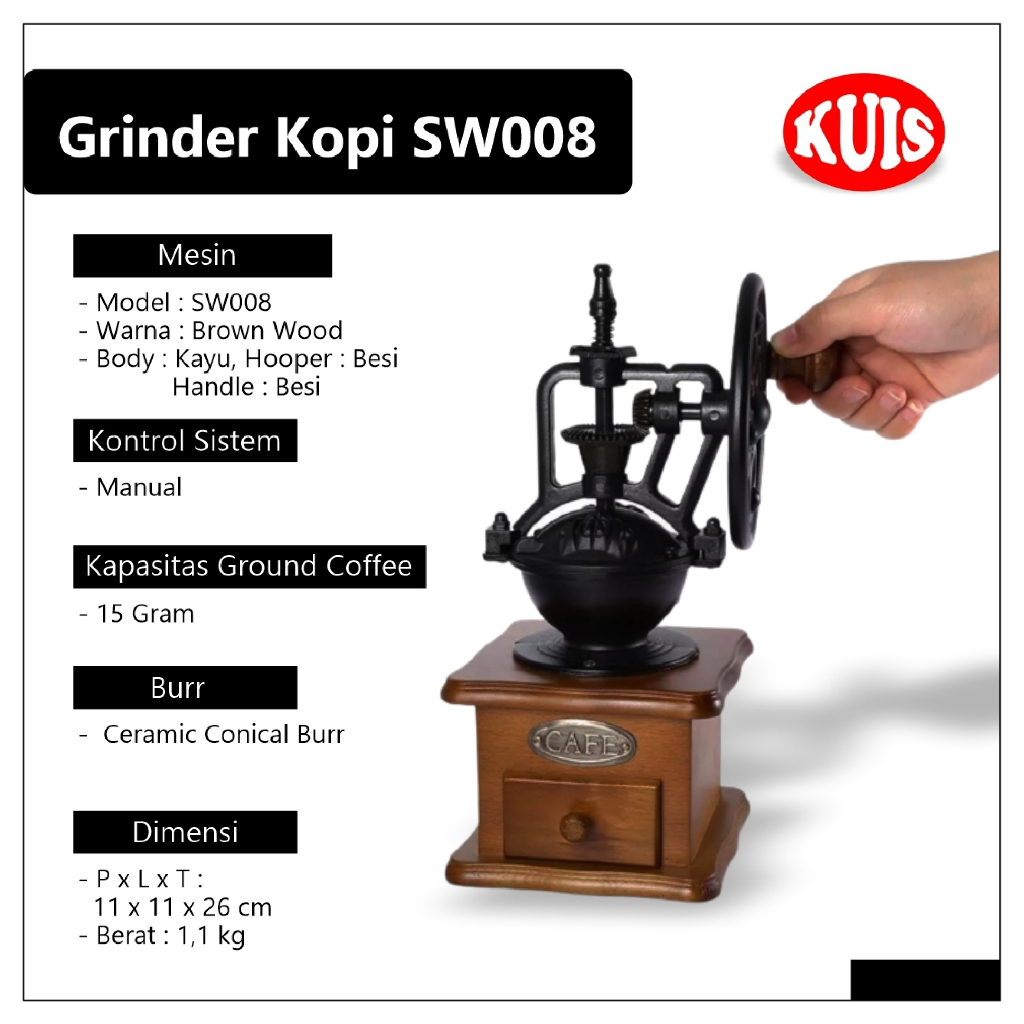 Alat Penggiling Kopi Manual Model Grinder Klasik Coffee Kayu SW008