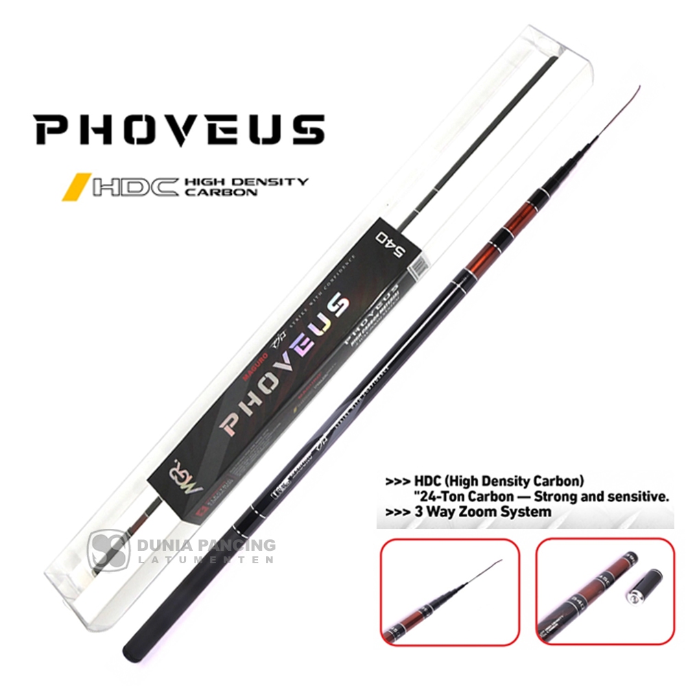 Joran TEGEK MAGURO FLEXING - PHOVEUS High Density Carbon | 360 - 450 - 540 - 630 | Tegek Zoom Pole Ruas Standar | Kolam