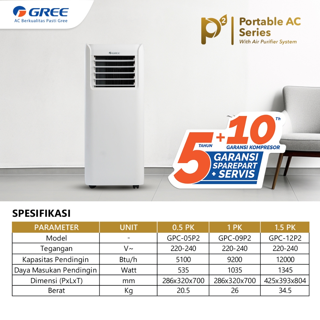 GREE AC Portable 0,5 PK - Air Purifier - Multiplen Speeds - Warna Putih - Model GPC-05P2