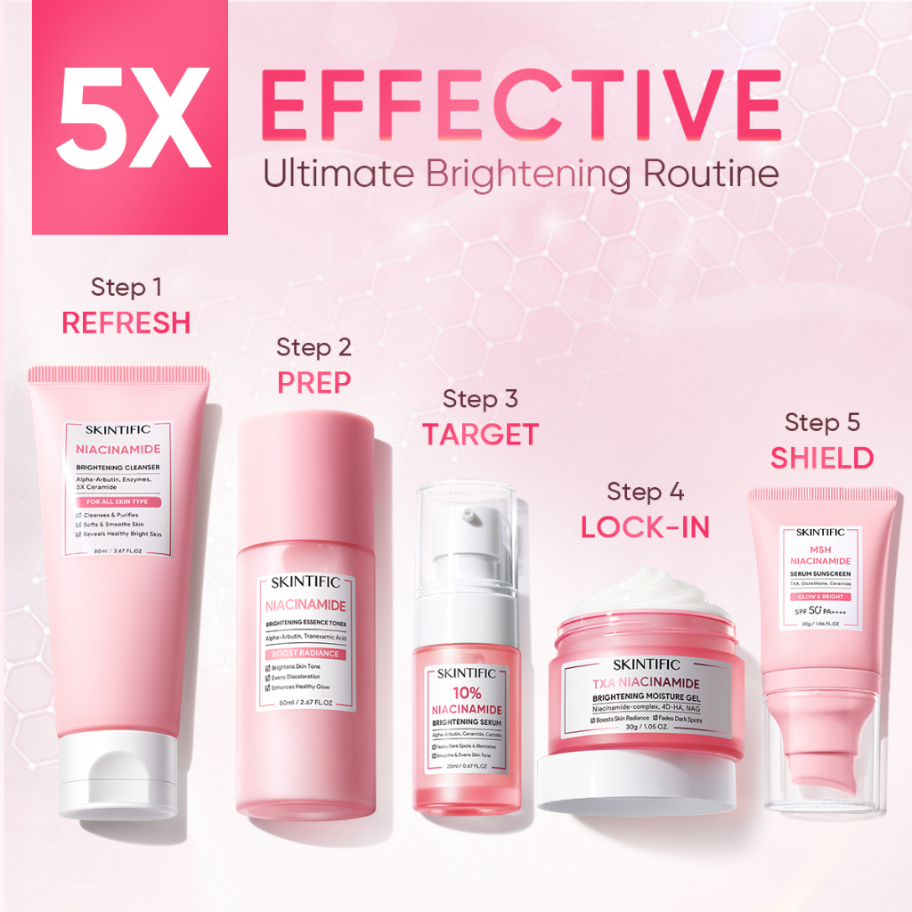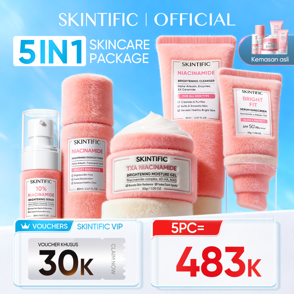 SKINTIFIC AUTHORIZED 5pcs Paket-Skincare Set | Serum Moisturizer Gel Toner Sunscreen Cleansing Mousse Facial Wash Day Ni