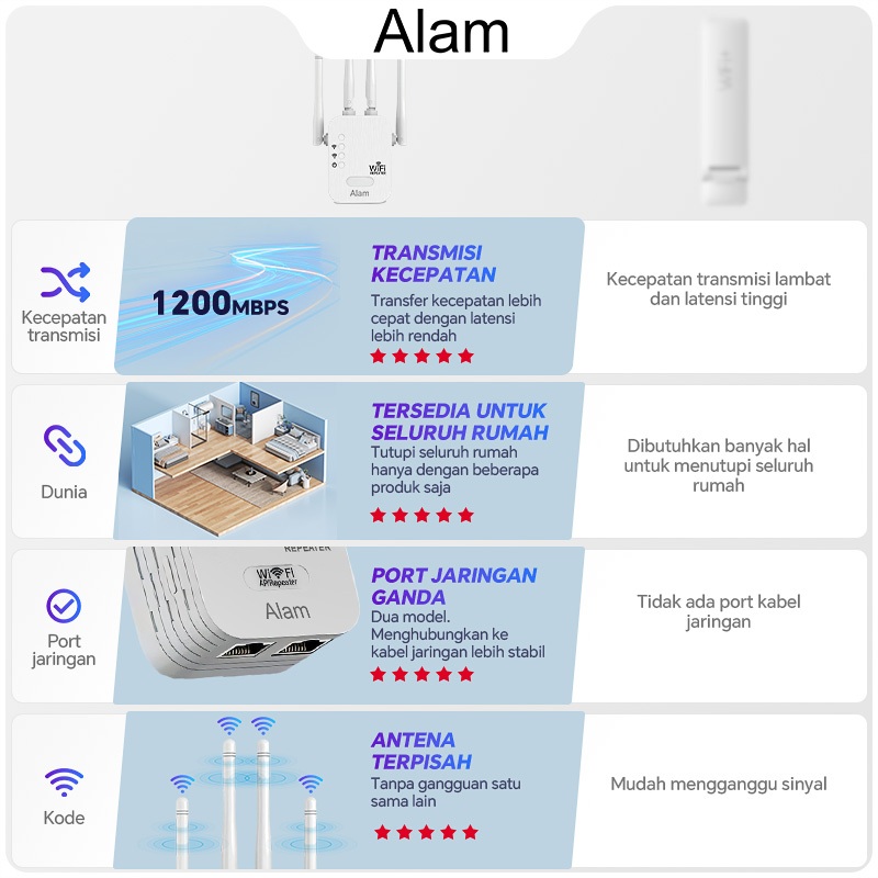 Alam Wifi Repeater/1200Mbps Wifi Range Extender/2.4G WiFi Signal Amplifier Extender Router/Wi-Fi-Ultraboost-Access-Point