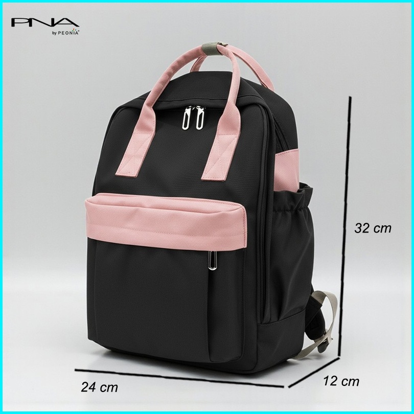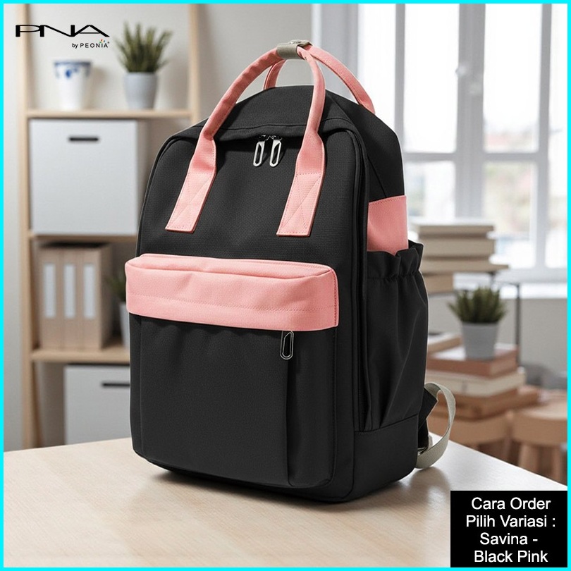 Peonia Pna Savina Water Resistant Tas Ransel Wanita Import Korean Style Besar Laptop Backpack Punggung Kantor Kerja Seko