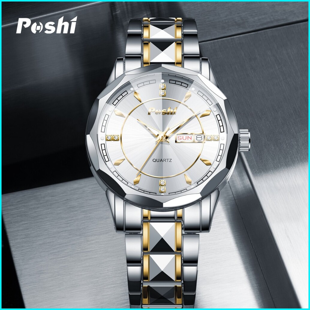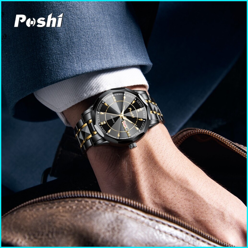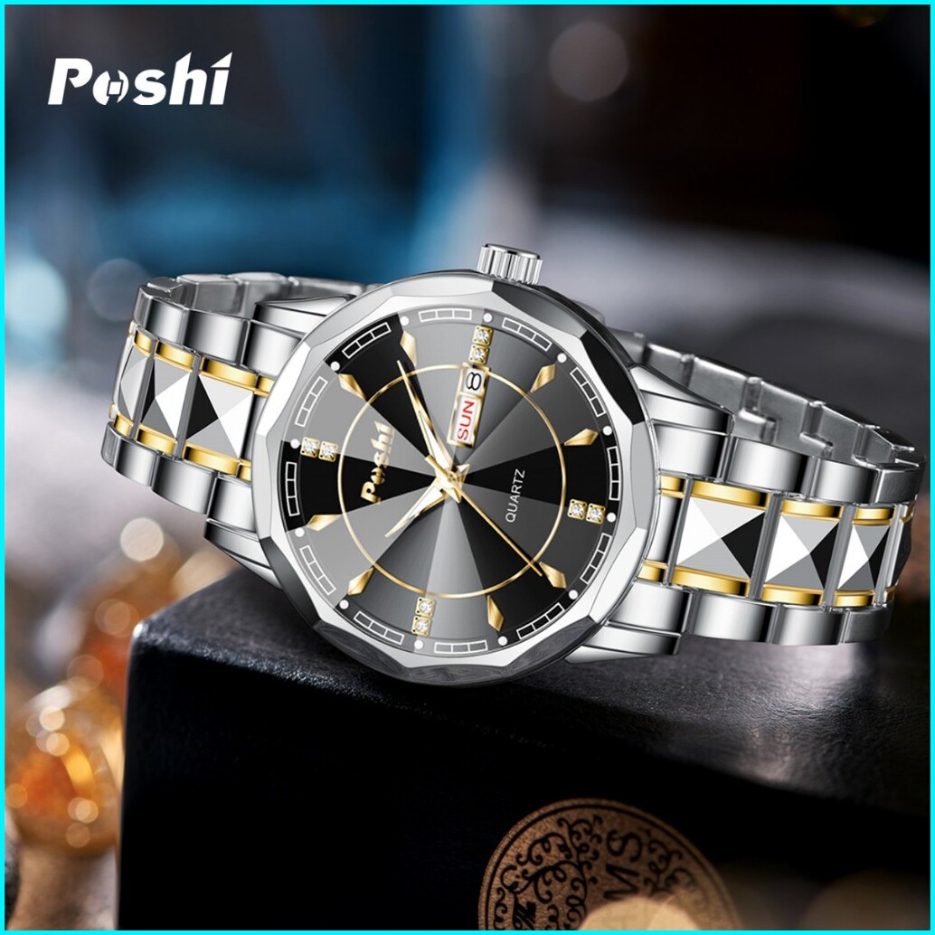 Poshi Jam Tangan Pria Bisnis Anti Air Kuarsa Jam Pria Calendar Tali Stainless Steel Ps983 Watches