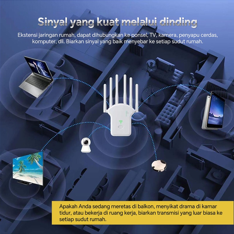Wireless Router 1200Mbps Wifi Extender Booster Tanpa kabel Wifi Repeater Jarak Jauh 2.4G/5G Signal Booster Range Extende
