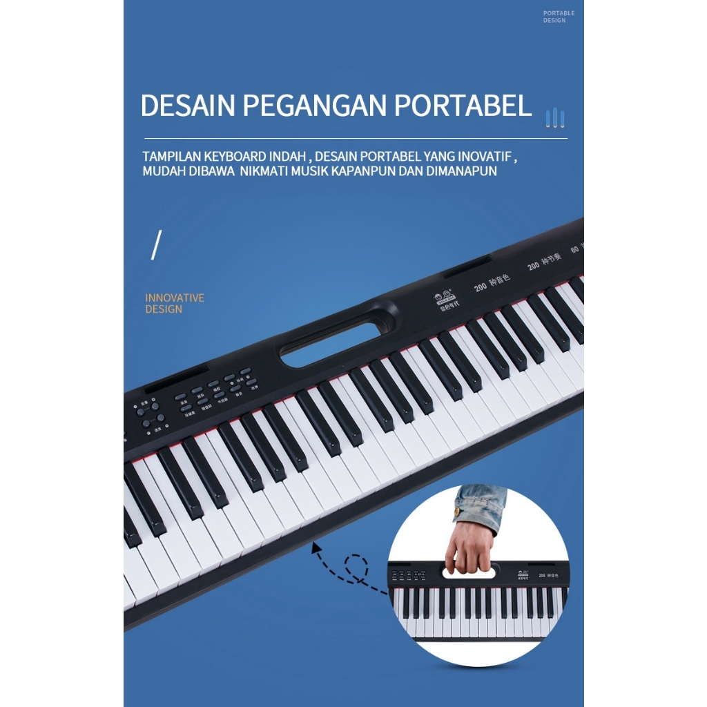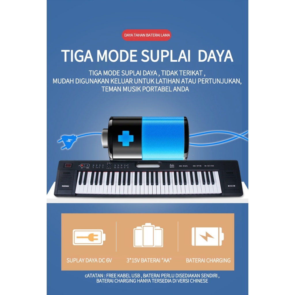 Qinyin Pavilion 61 Keys Keyboard Elektrik Portabel Piano Dengan Multifungsi untuk Anak-Anak Dan Pemula