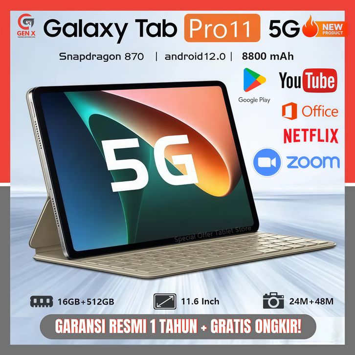 Tablet Baru Android 12 Inci Layar Tinggi Definisi 5G Dual SIM WiFi Belajar Hiburan Kantor Murah Garansi Resmi