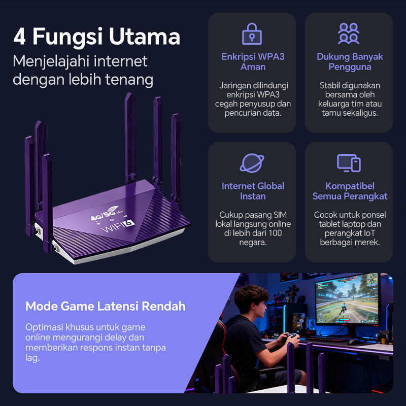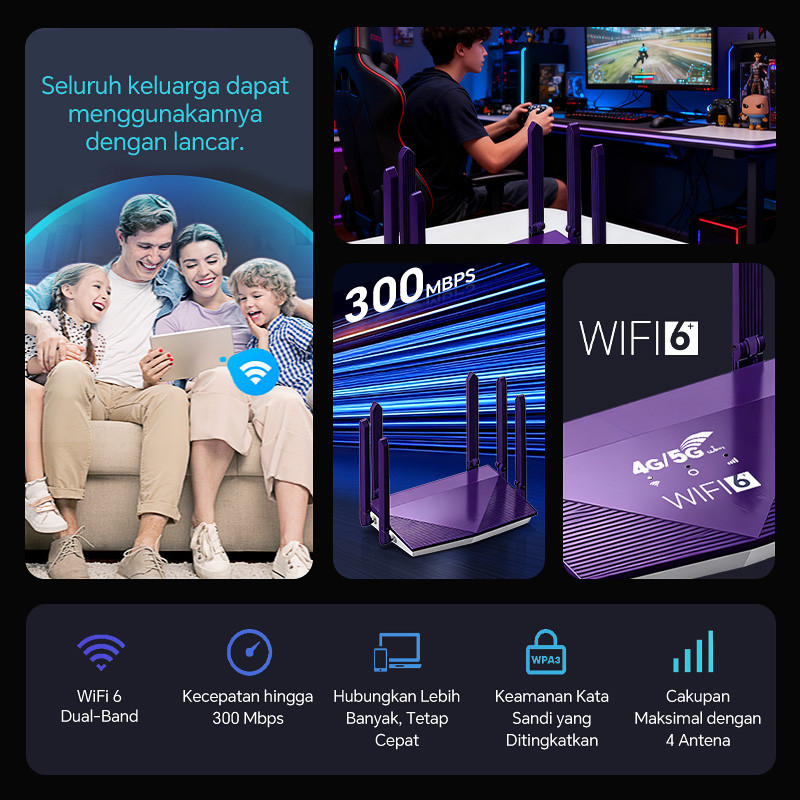 MISENI Wifi Wireless Router 4G LTE Dengan Wi-Fi 6 Cepat Internet 300mbps Support SIM CARD Modem Untuk Rumah Berukuran Be