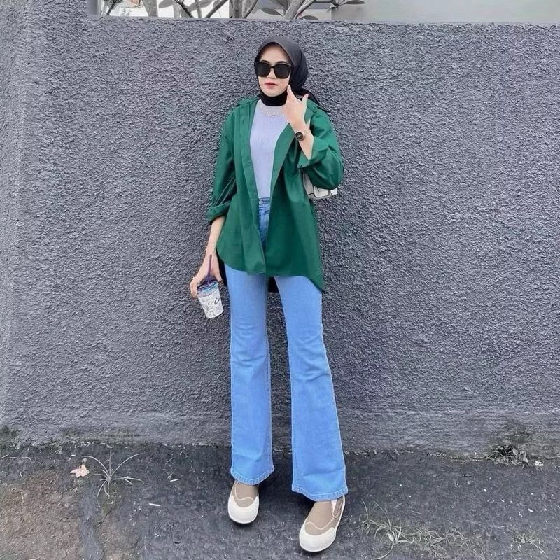 Highwaist Celana Jeans Cutbray Strecht Korean Style Kekinian