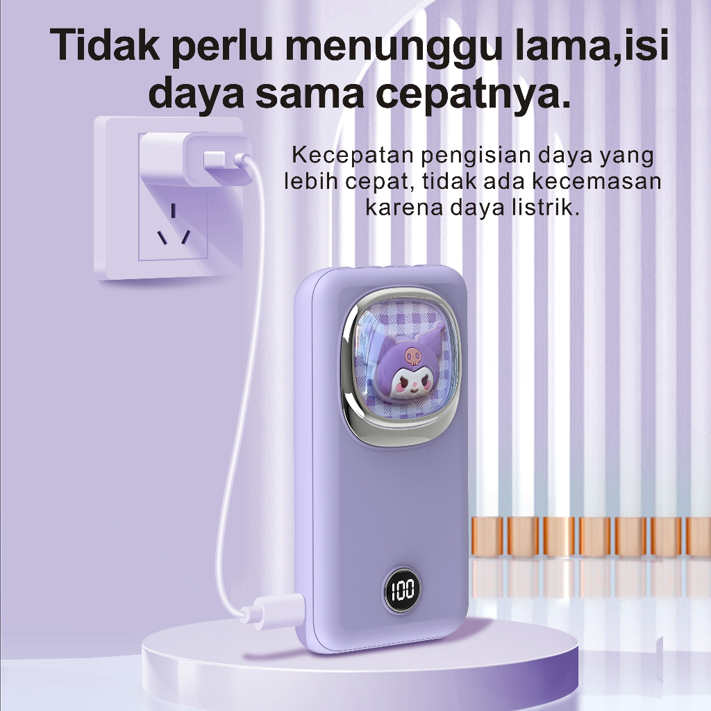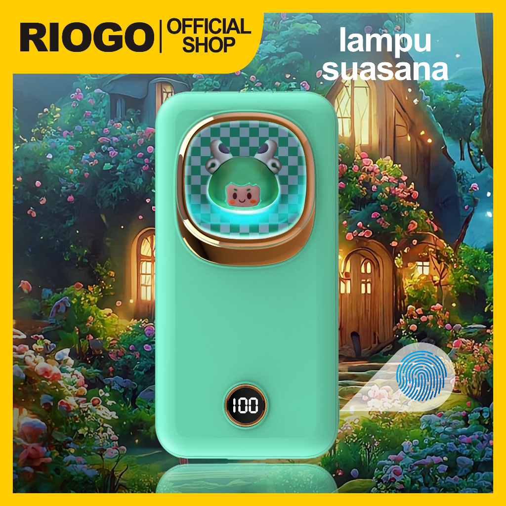 RIOGO Model Slim wer 20000mAh Fast Charge - Kabel iPhone/Type C Lucu dengan lampu pernapasan