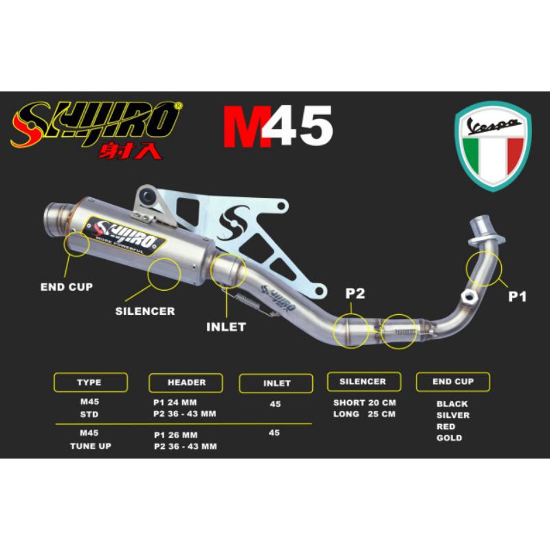 Knalpot Vespa Matic 150 Type M45-M3 Shijiro Racing Original