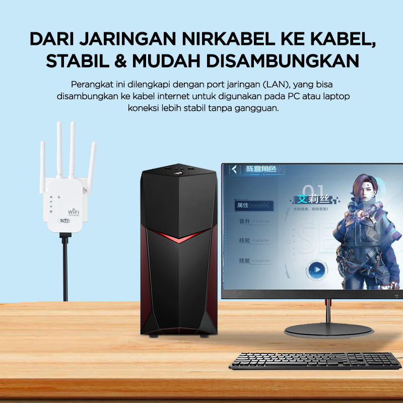 Smarteck WiFi Extender Repeater SWF01 Wireless Range Router 4 Antenna Home Signal Super Strong Wall Penetration Penguat