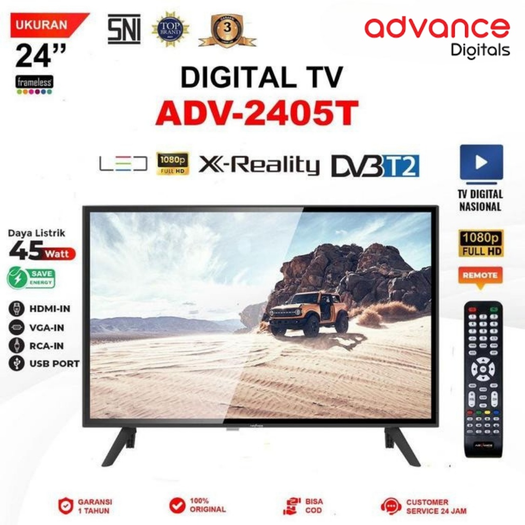 Advance LED TV ADV2405T | ADV 2405T Televisi Digital 24 Inch Bonus Remote