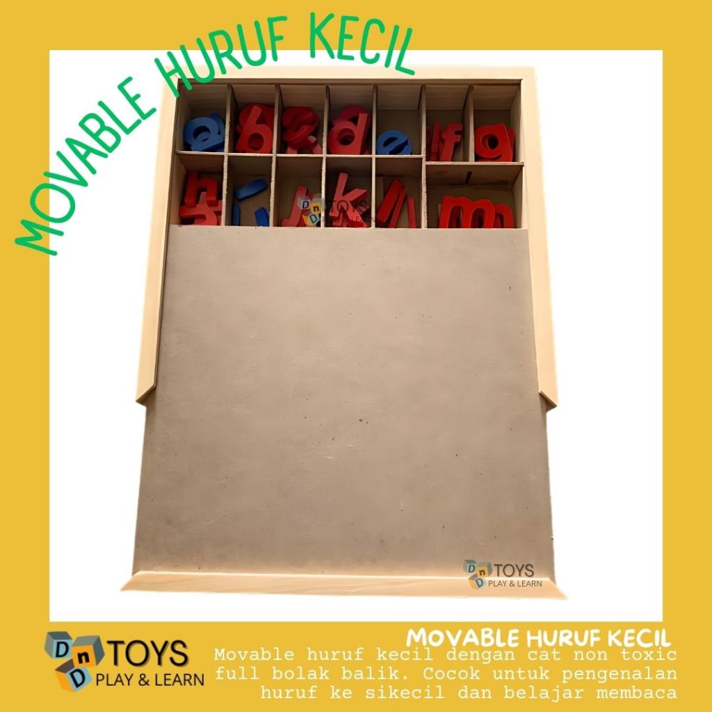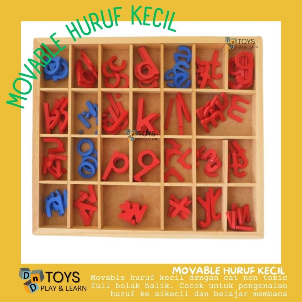 Mainan Edukasi Anak - Montessori Movable Alphabet Balok Kayu Alphabet Huruf Kecil Belajar Membaca
