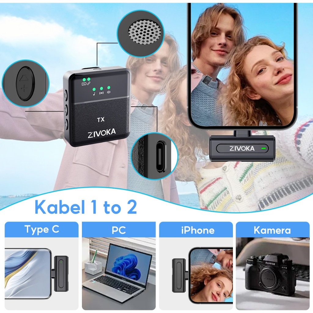 ZIVOKA EnduroMic Wireless Lavalier Microphone 2, Lavalier Microphone, Wireless Microphone, HP Camera, Vlog, YouTuber, Li
