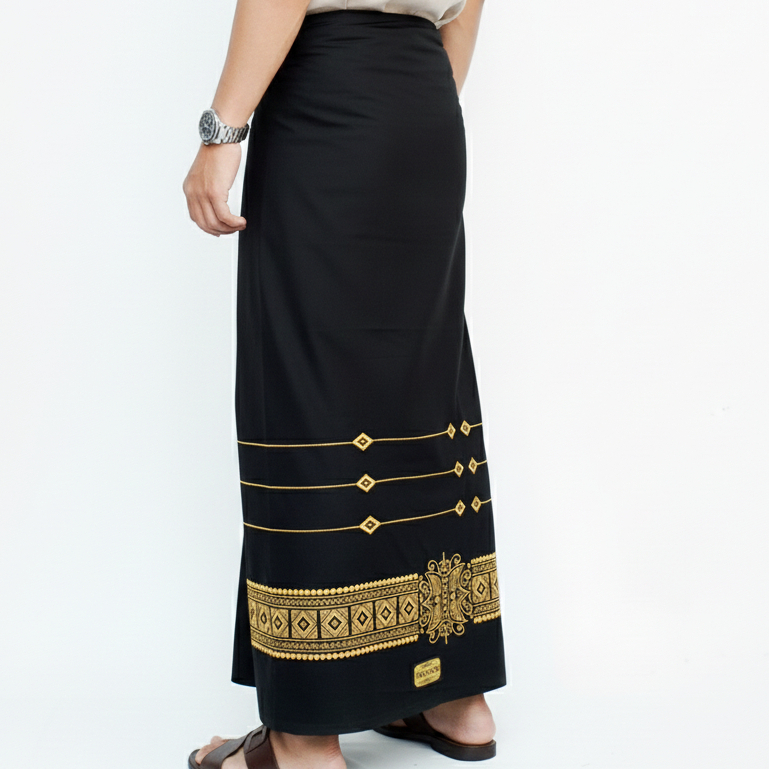 M Syabil-Sarung Katun Wadimor Bordir Timbul Sarung Pria Dewasa Warna Hitam Sarung Sholat 100 PERSEN