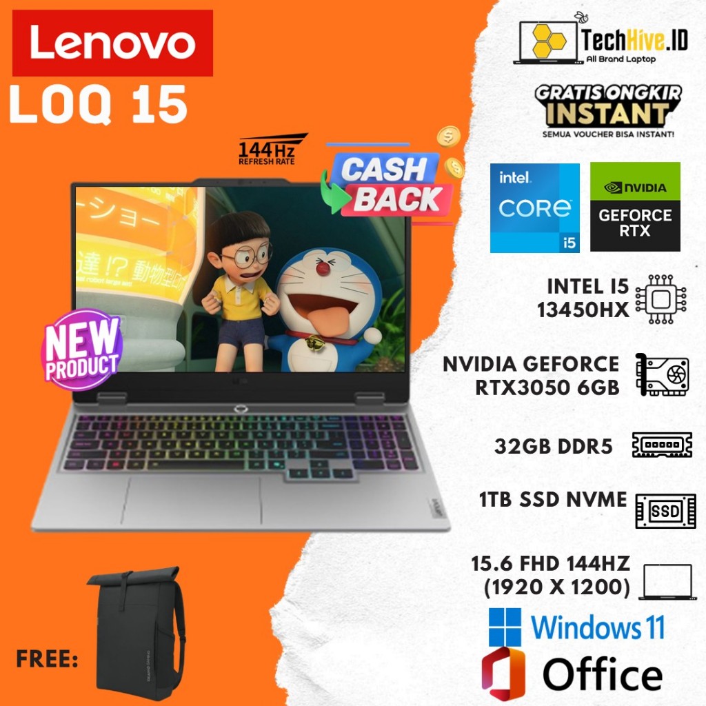 Lenovo Loq 15 I5 13450HX RTX3050 6GB | 32GB 1TB SSD W11+OHS+M365B 15.6FHD 144HZ