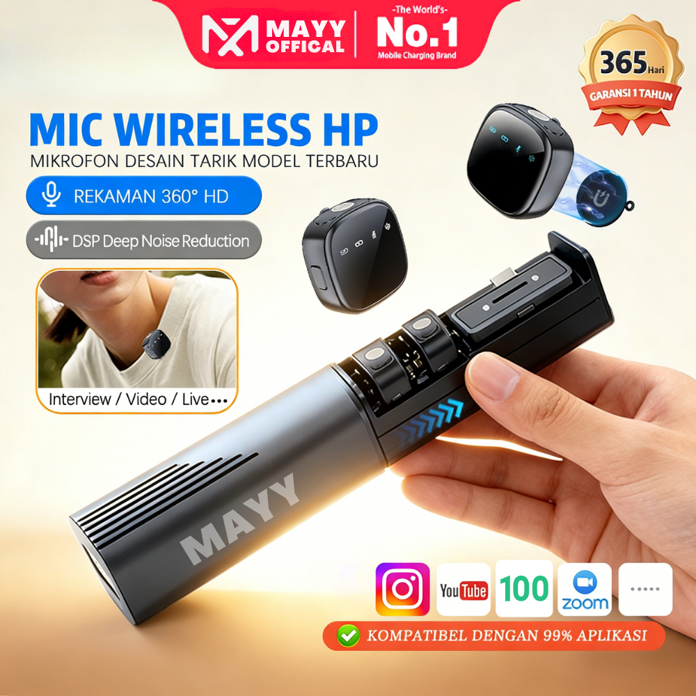 MAYY H026 2Mic Wireless Clip on Microphone Dual Mikrofon Wireless Mikrofon hp Lavalier Microphone wireless Plug & Play