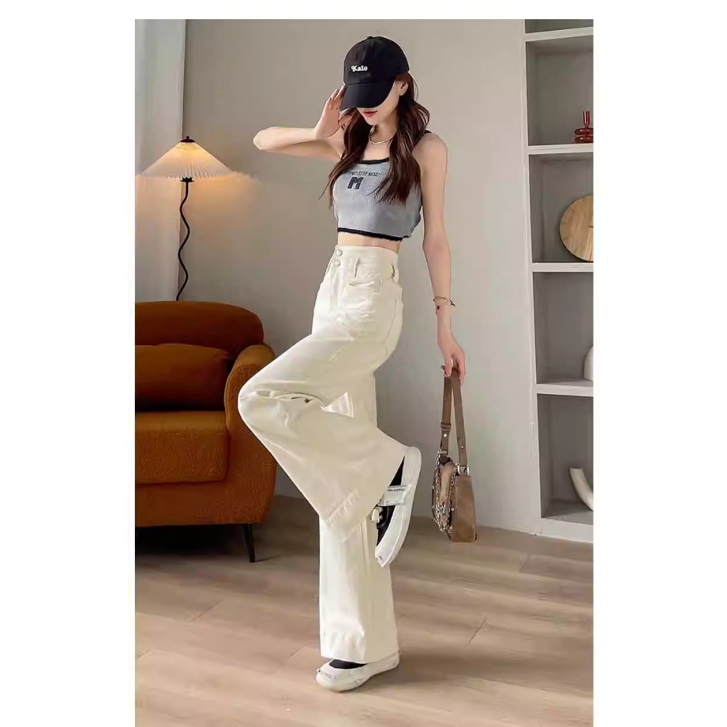 2025 NEW JUMBO Highwaist Cutbray Jeans koreaCelana Jeans Cutbray Loose Wanita putih pants premium