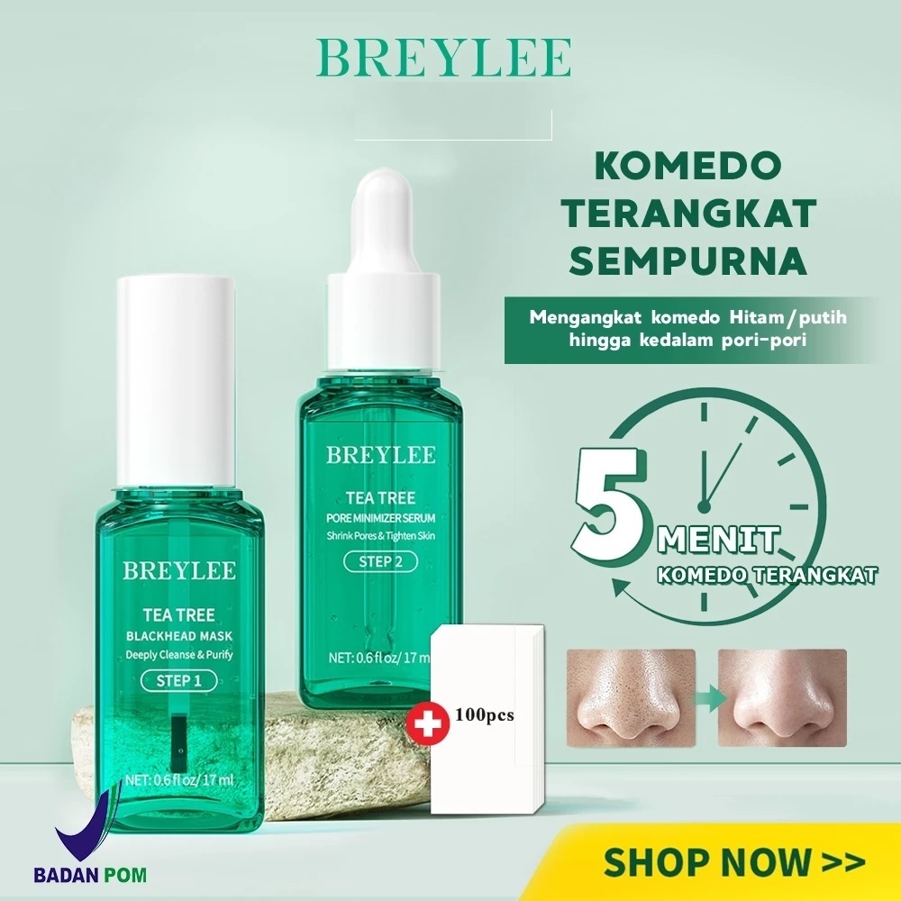 BPOM BREYLEE Tea Tree Blackhead Mask & Pore Minimizer Serum - Masker Komedo Hidung Pengangkat Komedo