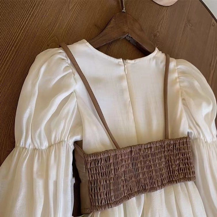 Ready Girls Autumn Dress Two-piece Suit Autumn French Retro PU Leather Vest Dress Suit T69