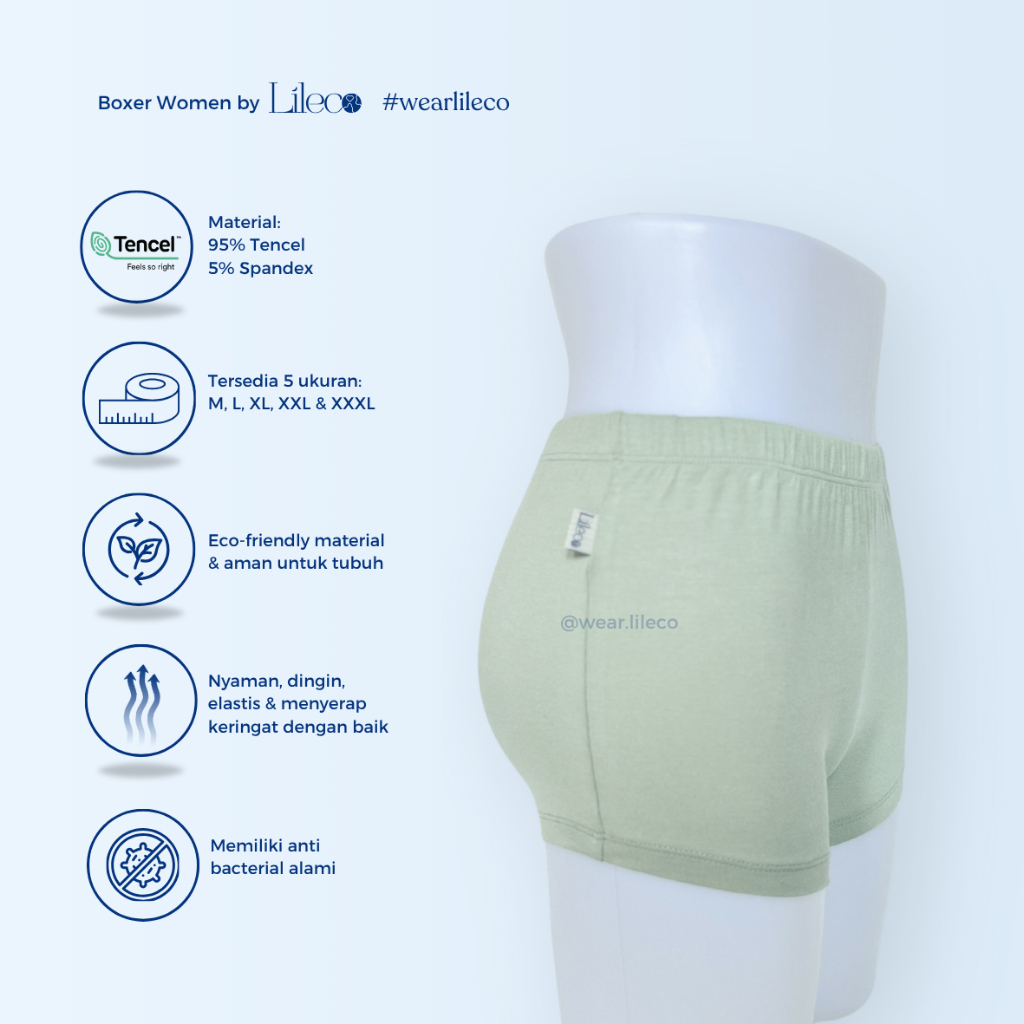 LILECO - Celana Dalam Boxer Wanita Tencel Nyaman & Lembut isi 3 pcs | Boxer Wanita Anti Iritasi & Anti Bakteri | Underwe