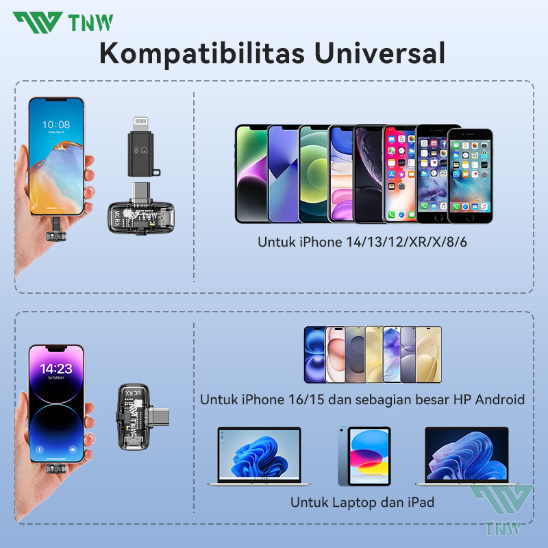 TNW X23M Wireless Microphone Mini Clip On Microphone Lavalier Microphone Dengan AI Voice Changer