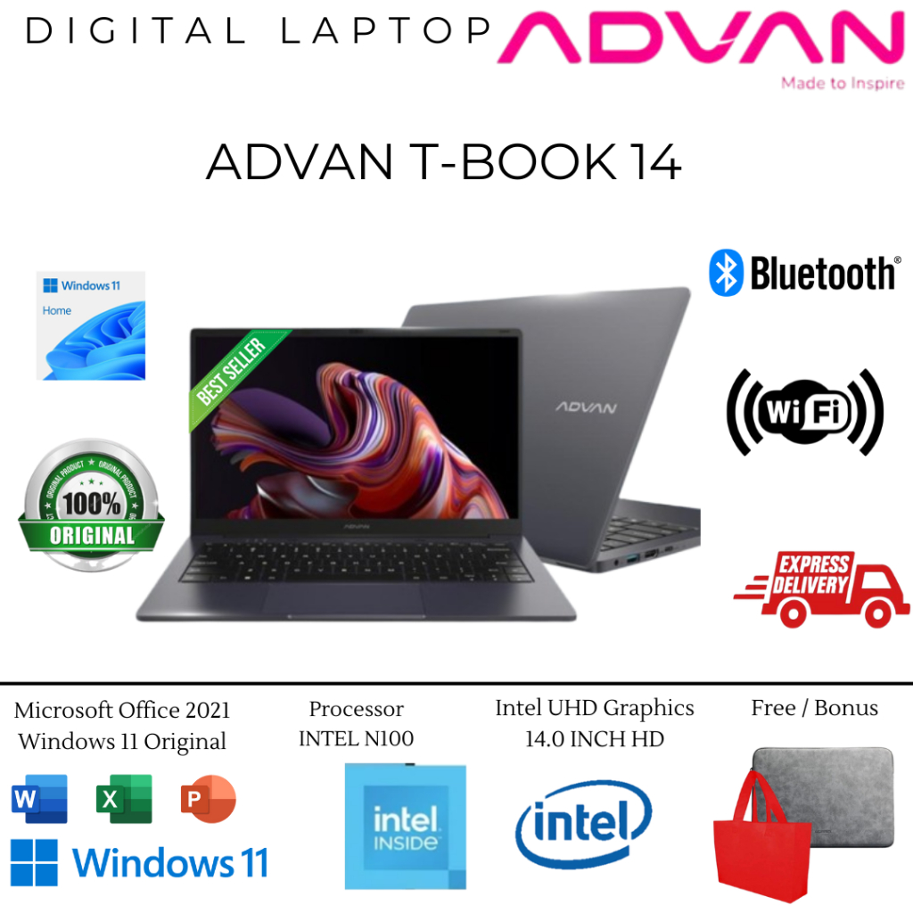 ADVAN T-BOOK 14 Intel N100 RAM 8GB 384GB SSD 14 Inci HD W11 - Laptop Budget Murah & Handal Terlaris