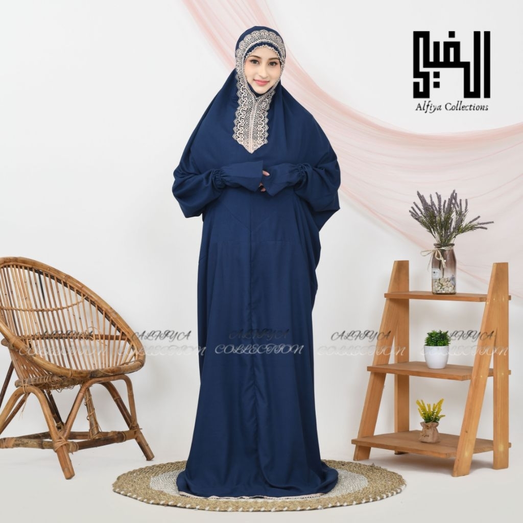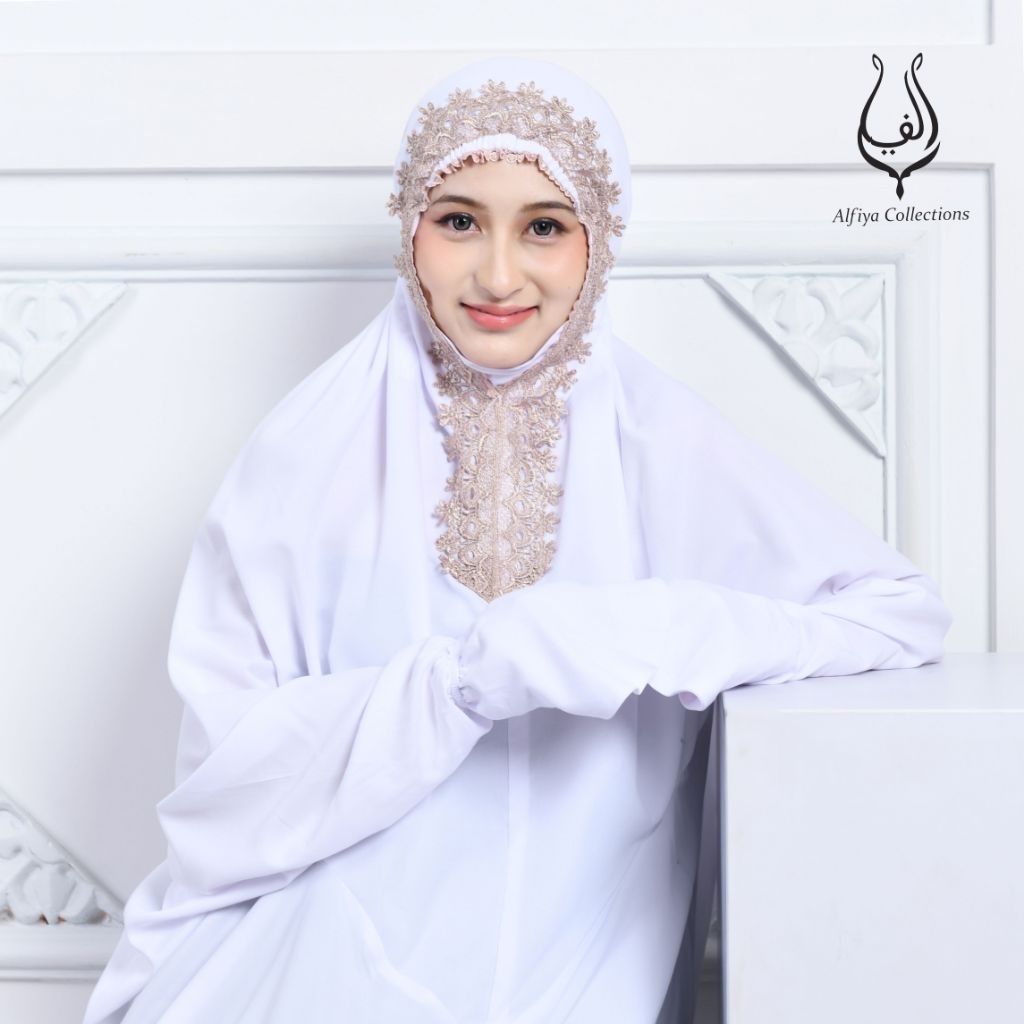 Alfiya Mukena Terusan Mukenah Lajuran Dewasa Polos Renda Atas Bawah Katun Premium